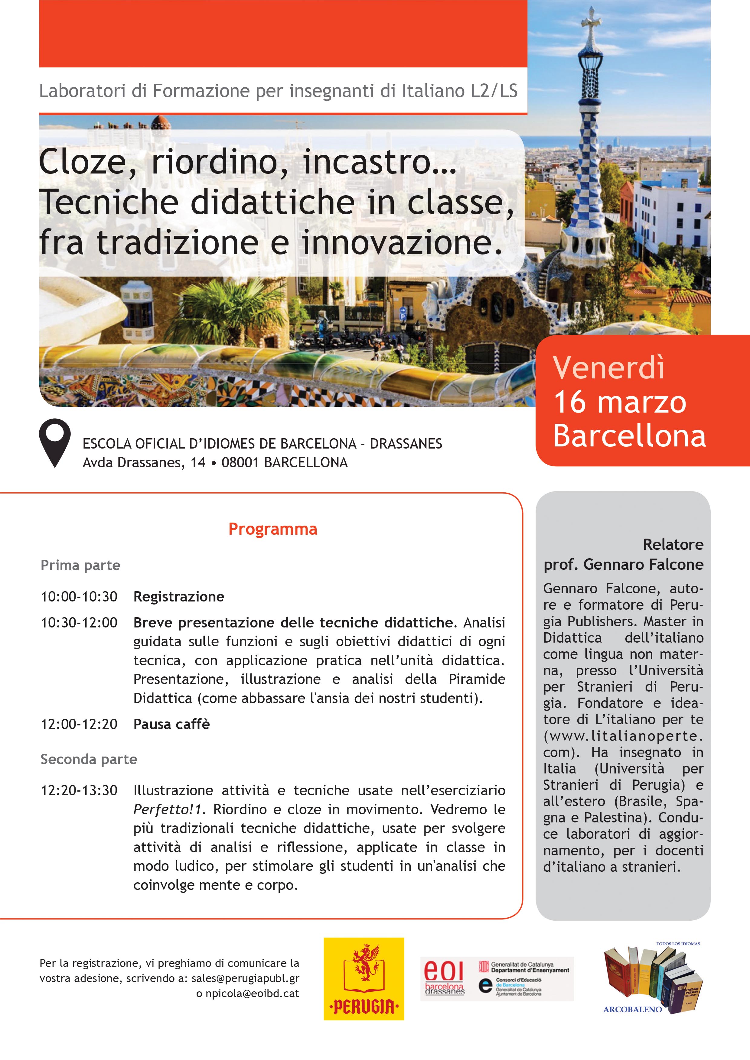 Perugia Edizioni, EOI Escola Oficial D’Idiomes de Barcelona - Drassanes e Arcobaleno2000, sono lieti di invitarvi alla Giornata di formazione per insegnanti di italiano a Barcellona.